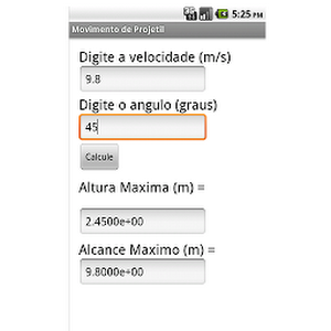 Calcula a altura máxima e o alcance máximo em um lançamento de projétil.What's new in Movimento de Projétil 1.0