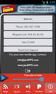 Alice 105.9 has made it even easier to listen live. The Alice app lets you listen and interact with Alice 105.9 anytime, anywhere; get artist and title info as you hear each song; enjoy other apps while listening to Alice live; and catch up on our latest blogs. You can even use the Alice app as an alarm clock! No registration required - and it's absolutely free!Listen to Alice 105.9 LIVE, plus